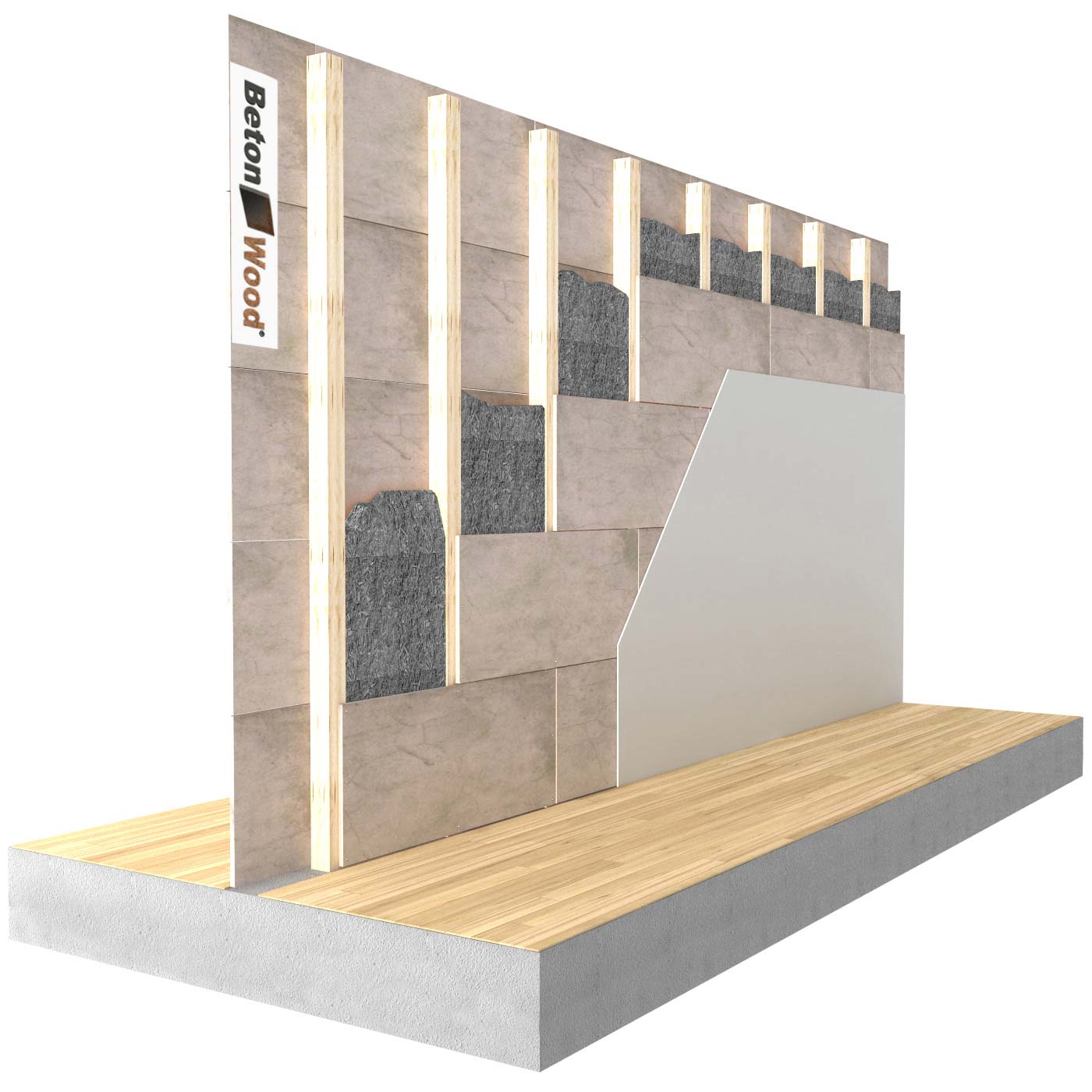 Sistema per cappotto termico interno in fibra di legno intonacabile FiberTherm Protect dry realizzato con pannelli a spigolo vivo o maschio/femmina prodotti a secco e disponibili in 3 densità 110kg/m³, 140kg/m³ e 180kg/m³, tasselli per il fissaggio della fibra di legno, rasante/collante, rete in fibra di vetro BetonNet e accessori.