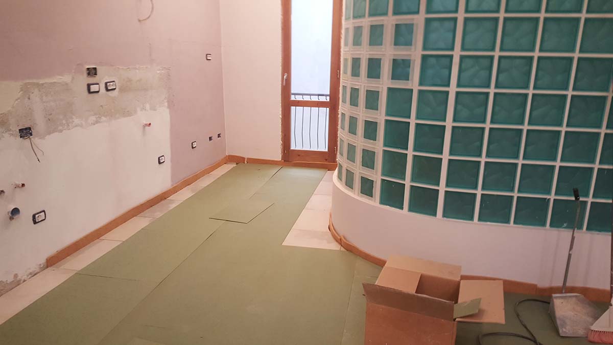 Pavimento radiante sopraelevato in fibra di legno e cementolegno